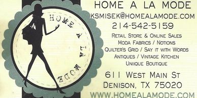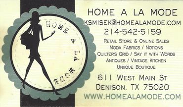 This shop is and online retailer and has a storefront located in beautiful downtown Denison and carries EVERYTHING MODA and many other fabrics, such as EE Schenck, Maywood, Batik Textiles, and Loralie. They carry Quilter's Grid, a fusible non-woven printed with 1" grid, which makes piecing a snap. In addition, they have gifts, such as antiques, homemade soaps, lotions, and scrubs. We can't wait to see all their items!