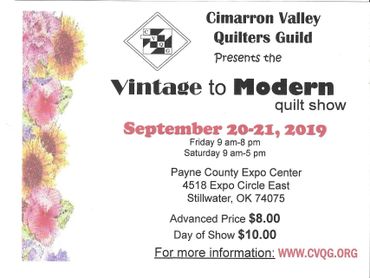 Mark your 2019 calendar for a Vintage to Modern Quilt Show hosted by Cimarron Valley Quilters Guild of Stillwater, OK.