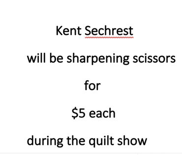 As a BONUS - Kent will be SHARPENING SCISSORS during the show for $5 each. You'll never find it easier to have Kent get your scissors working their best while you enjoy the quilt show!