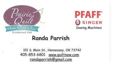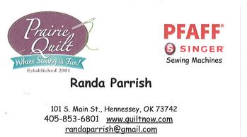 Prairie Quilt is located in a 100 year old historic building in downtown Hennessey and will be a vendor at our quilt show! They are the largest quilt shop in Oklahoma and have recently been chosen as one of the top ten shops in the nation by Quilt Sampler magazine. Get a taste of what they have to offer at our show!